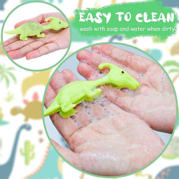 Ha a parittya dinoszauruszok piszkosak lesznek, egyszerűen kimoshatod őket szappannal és vízzel, és újra vadonatújnak fognak kinézni.